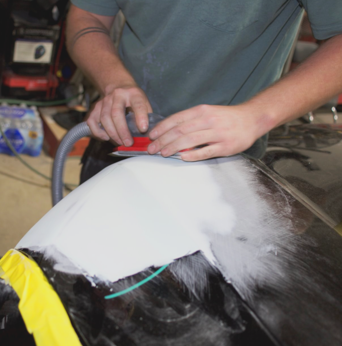 He walked us through the process of sanding filler down from the car. He seemed to favor the sanding block and the Festool orbital sander.