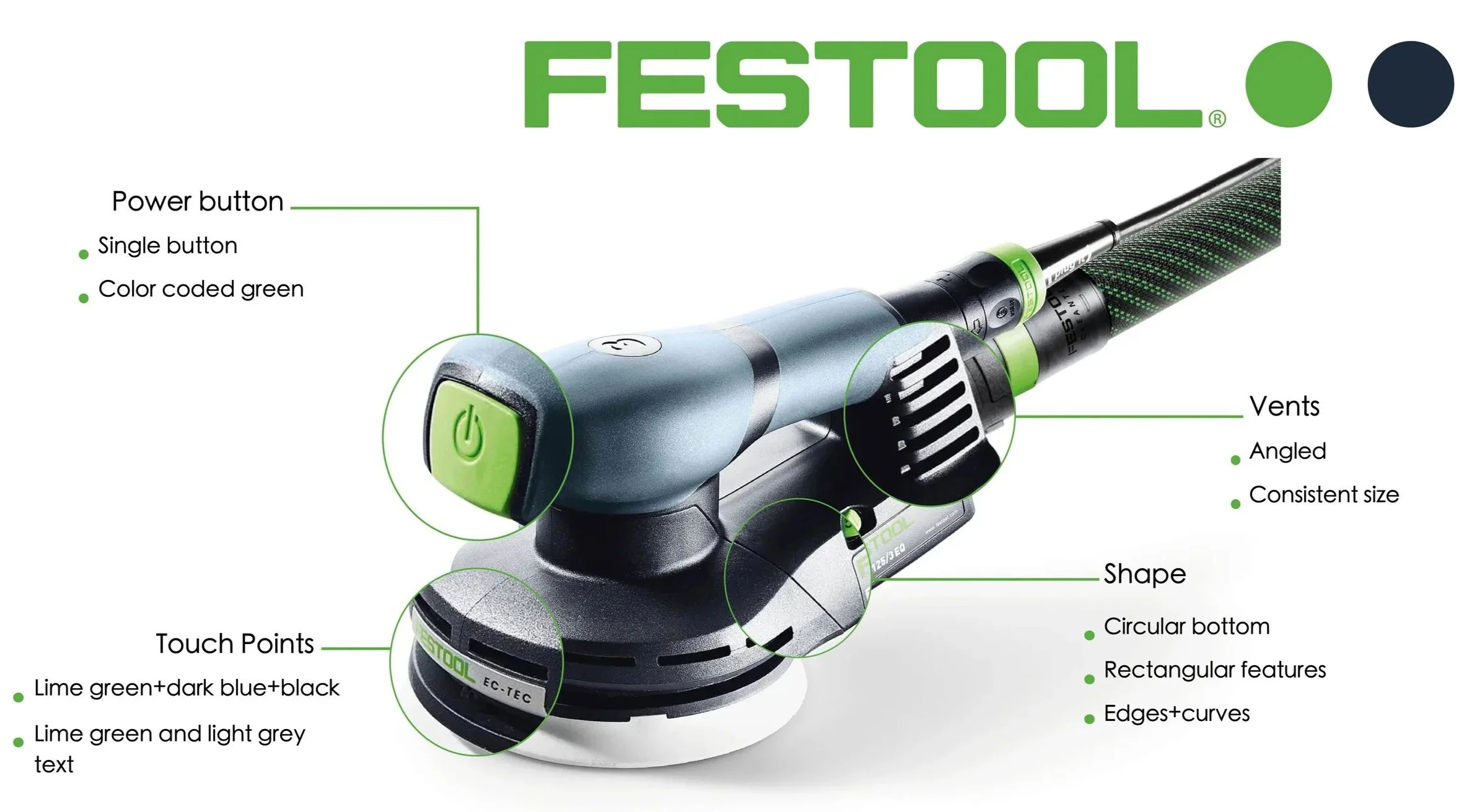 To design an orbital sander for assisting auto body mechanics. Many users prefer a sanding block in certain circumstances, but in return, lose efficiency. This design reimagines the orbital sander, making it the tool to reach for first.